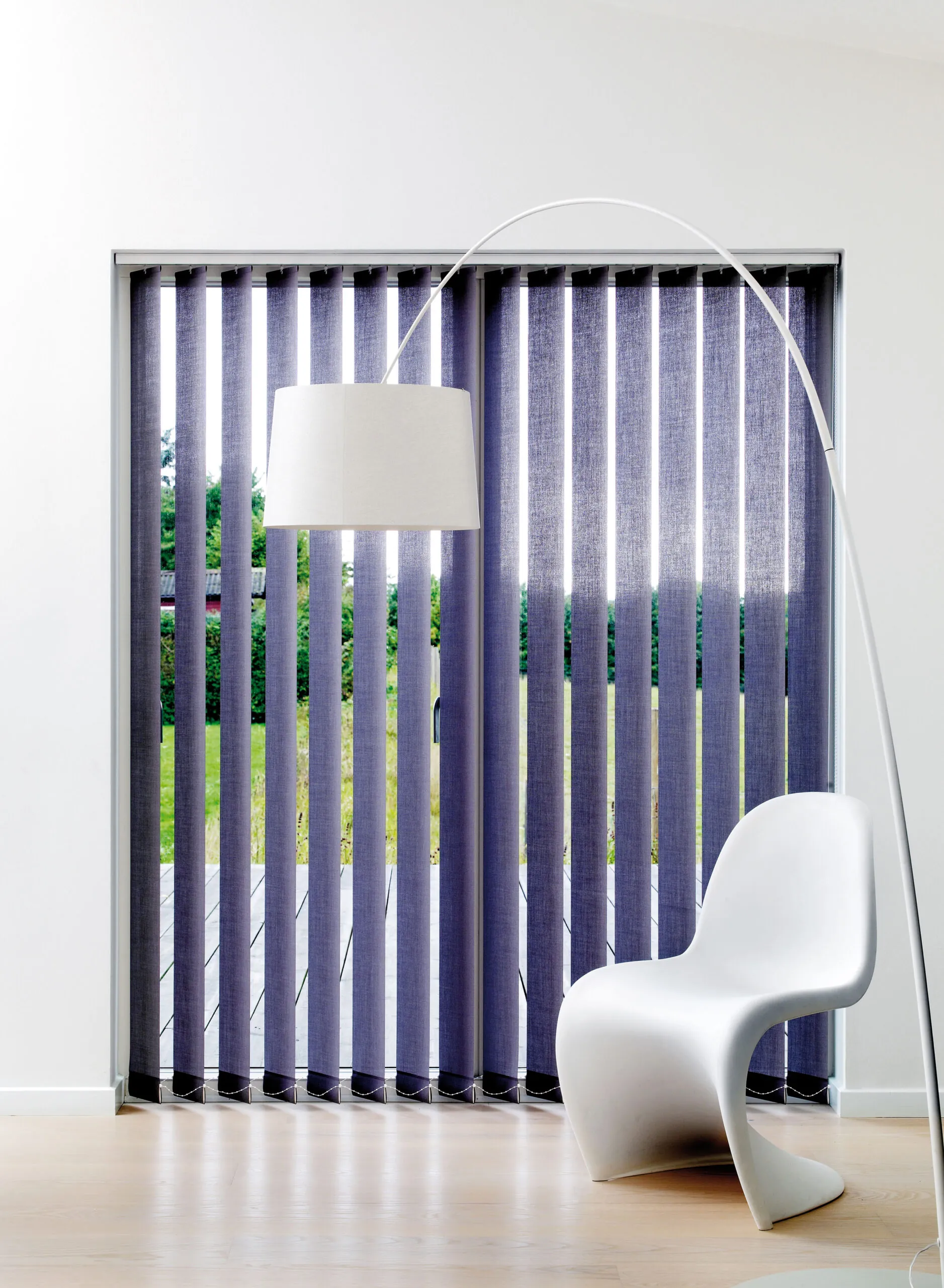 Vertikaljalousien nach Maß im Wohnbereich mit großen Fenstern